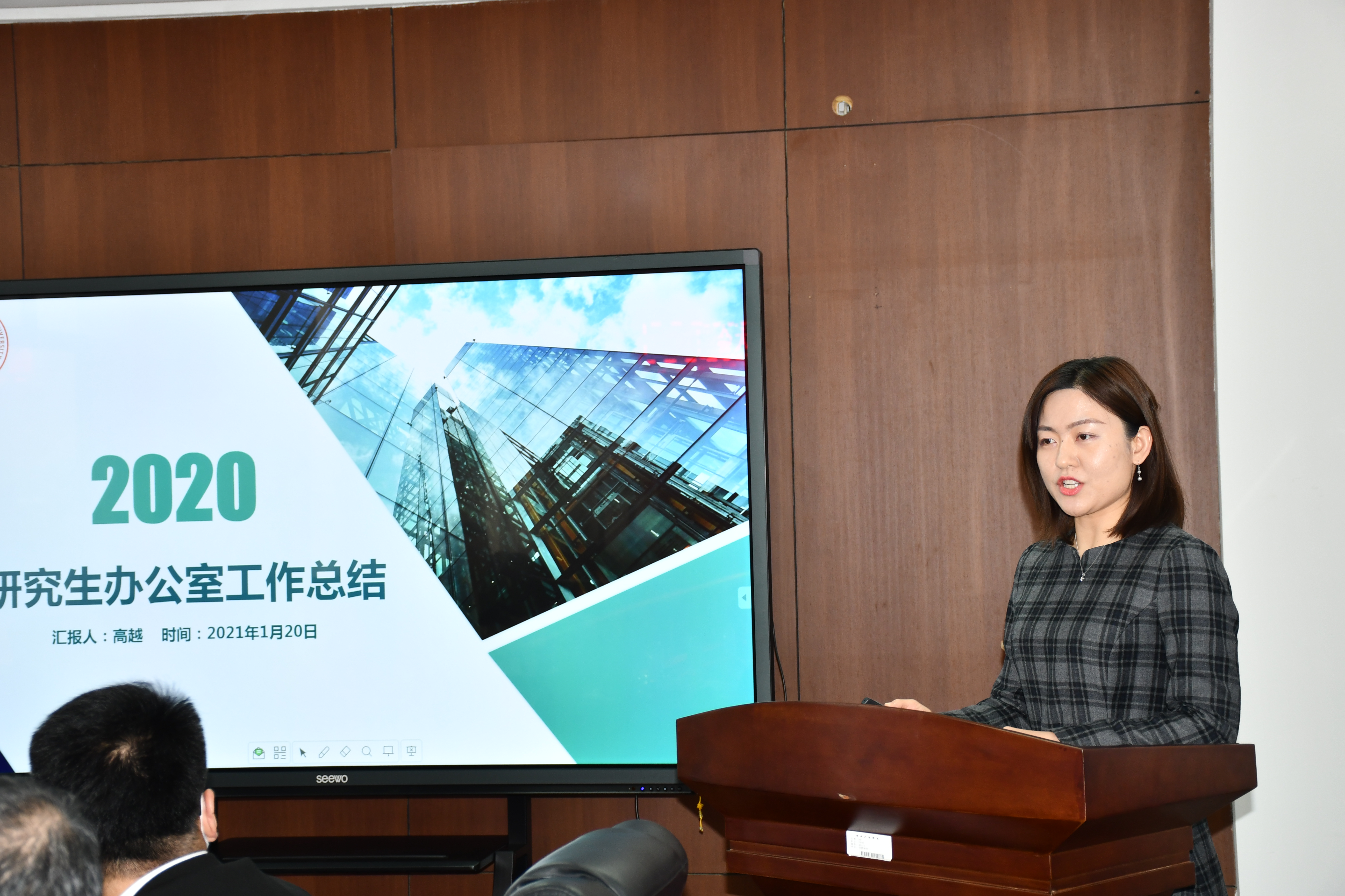 会上,公司党委办公室主任谢成洪、行政综合办公室主任杨宁、科研办公室主任麻吉河、研究生办公室主任高越、教务办公室负责人唐斌、员工工作办公室主任韩冰,分别围绕岗位职责履行情况和工作任务完成情况对2020年度工作、2021年计划进行了总结和汇报。